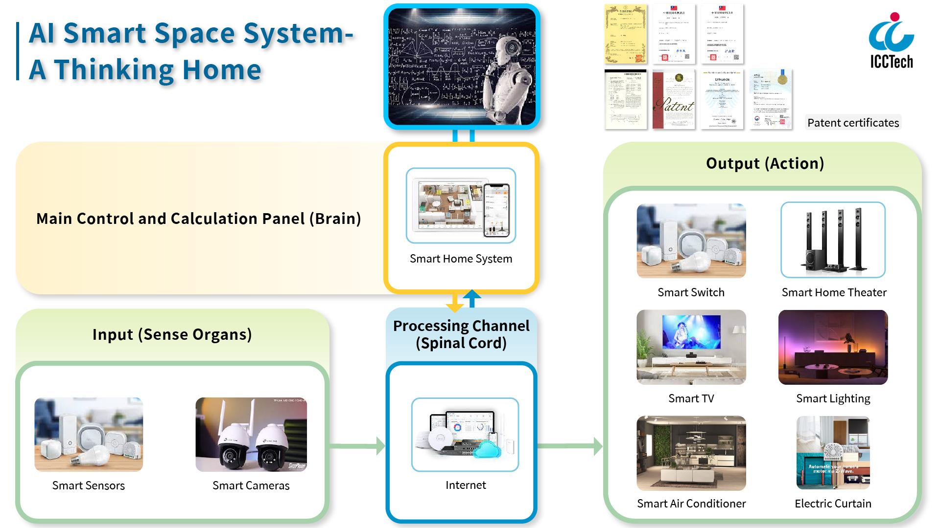 A Thinking Home is a highly advanced smart home system designed to revolutionize the way we live. It is equipped with cutting-edge technologies and features an "integration mode" that seamlessly manages the complicated and diverse smart devices in modern households. This integration mode enables the system to optimize utilization efficiency, giving users a seamless and effortless experience. The system uses ICCTech's innovative and multi-national patented technology, which applies the " Bidirectional artificial neural network for Intelligent Industrial IoT System" to the smart home system. This helps the system achieve intelligent learning and automated control, resulting in a comfortable, energy-saving, safe, and convenient home experience for users. A Thinking Home is designed to cater to users who seek a modern and smart lifestyle. Furthermore, it is particularly beneficial for elderly and dementia patients, who can enjoy the system's remote monitoring, health monitoring, and location tracking features, among others. The system boasts an array of functions, including two-way channel neural network, sensing technology, self-learning and optimization, intelligent control, security and privacy protection, and many more. With its impressive range of features and capabilities, A Thinking Home delivers the future of smart living for users of all ages and lifestyles.