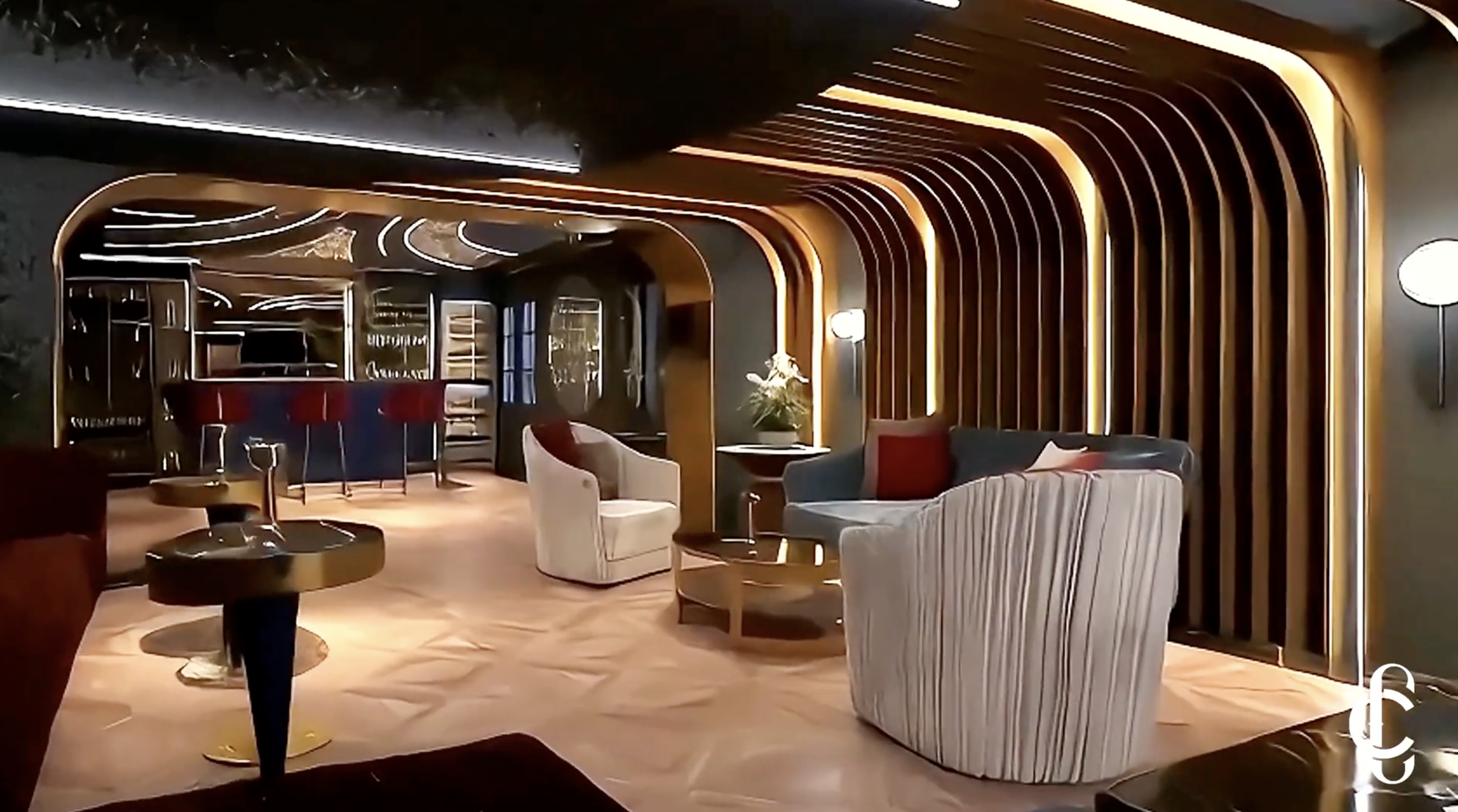 A very private client commissioned this cocktail bar room for the main residential villa, which reflects both the glamour of international nightlife venues and the intimacy of a space for the owner's quality time. Daring materials and fashionable tones make this room unique and yet accessible and enjoyable by all family members.