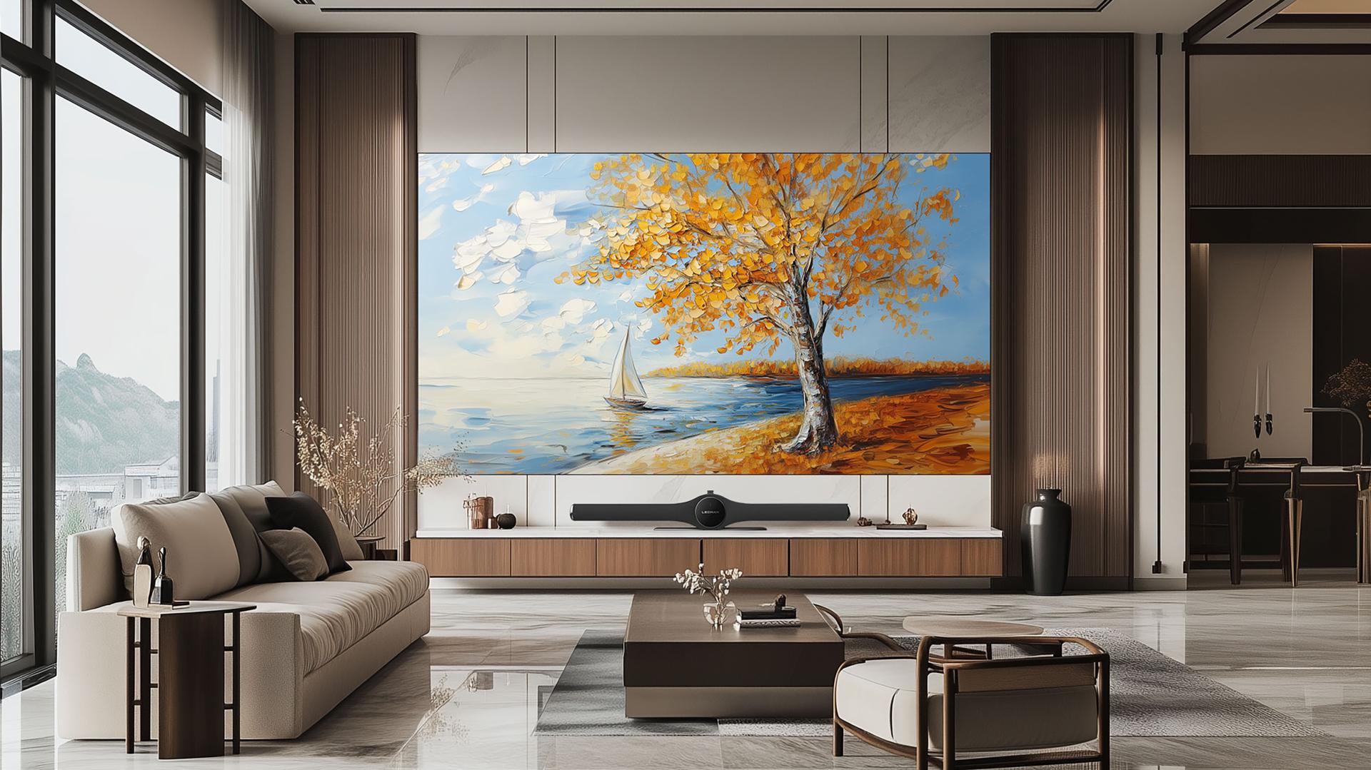 LEDPLAY Household UHD COB Giant Video Wall is specifically crafted for premium residences, spacious living rooms, home theaters, and private clubs, offering customized designs tailored to consumers' needs and spatial characteristics. Featuring an innovative modular assembly technology, it ingeniously solves the challenge of large-screen home installation. The product lineup includes 110-inch, 138-inch, and 163-inch models, breaking traditional size limits and meticulously creating multi-dimensional experiences. Seamlessly blending home entertainment with social interaction, it truly realizes the vision of "the wall becomes the screen, the view becomes the world."