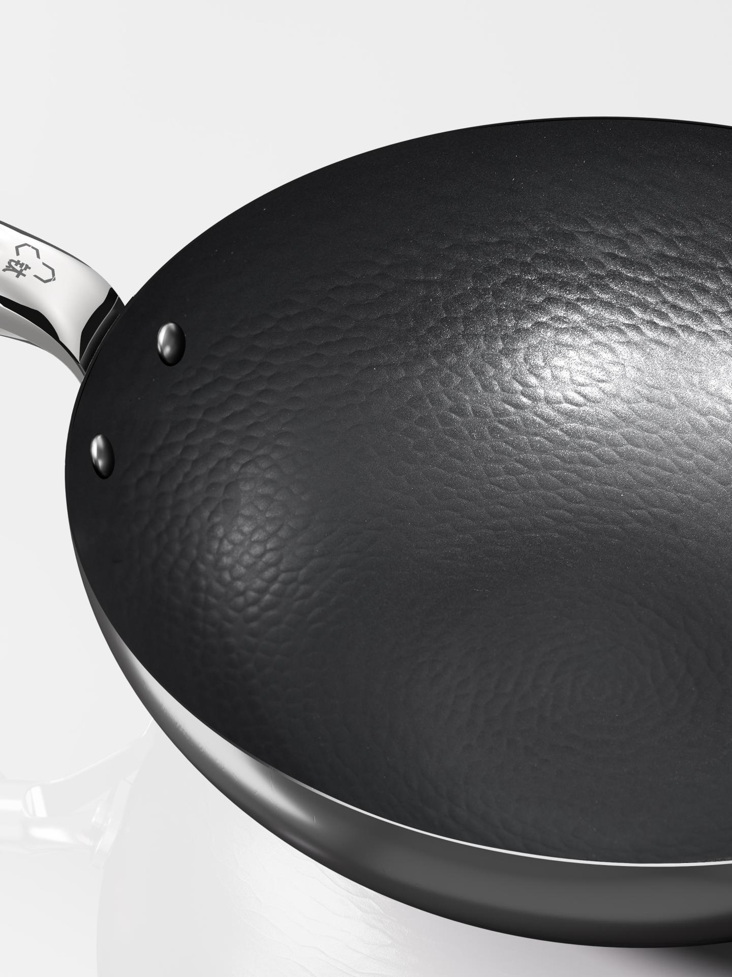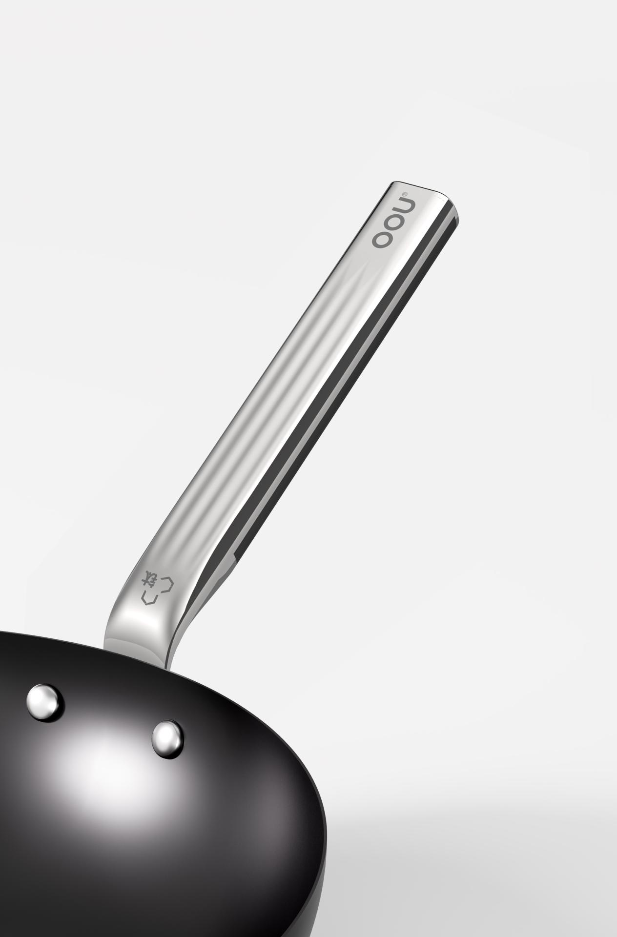99% of the set is made from ultra-pure iron imported from Japan, using top-grade ore with over 64% iron content, refined with traditional smelting methods and modern vacuum refining technology, to produce iron with an exceptional purity of 99.6%. This high-purity iron ensures fast, even heating that brings out rich, authentic Chinese flavors. OTN Titanium-Nitride Infusion Technology perfectly combines light weight with exceptional durability. In furnaces at 900 degrees Celsius, an ultra-high-pressure co-infusion process injects pure oxygen and nitrogen into the iron-based lattice, forming a 50 μm iron-nitride composite layer. This significantly boosts rust resistance by 90% and increases hardness to three times that of conventional iron cookware, enabling it to withstand frequent scraping from metal spatulas. The result is cookware that is both robust and surprisingly light, allowing users to easily lift it with one hand and making cooking more convenient and enjoyable.
