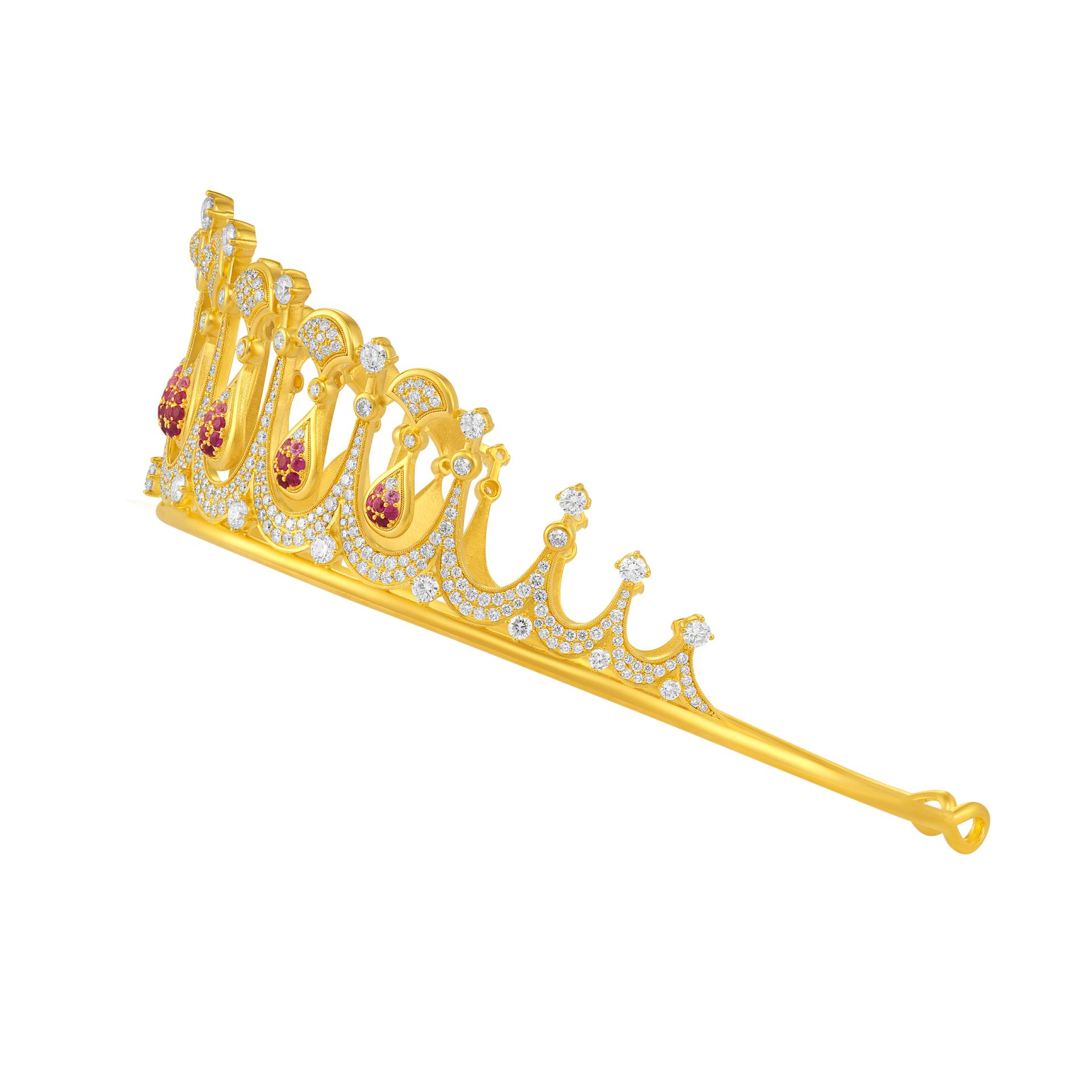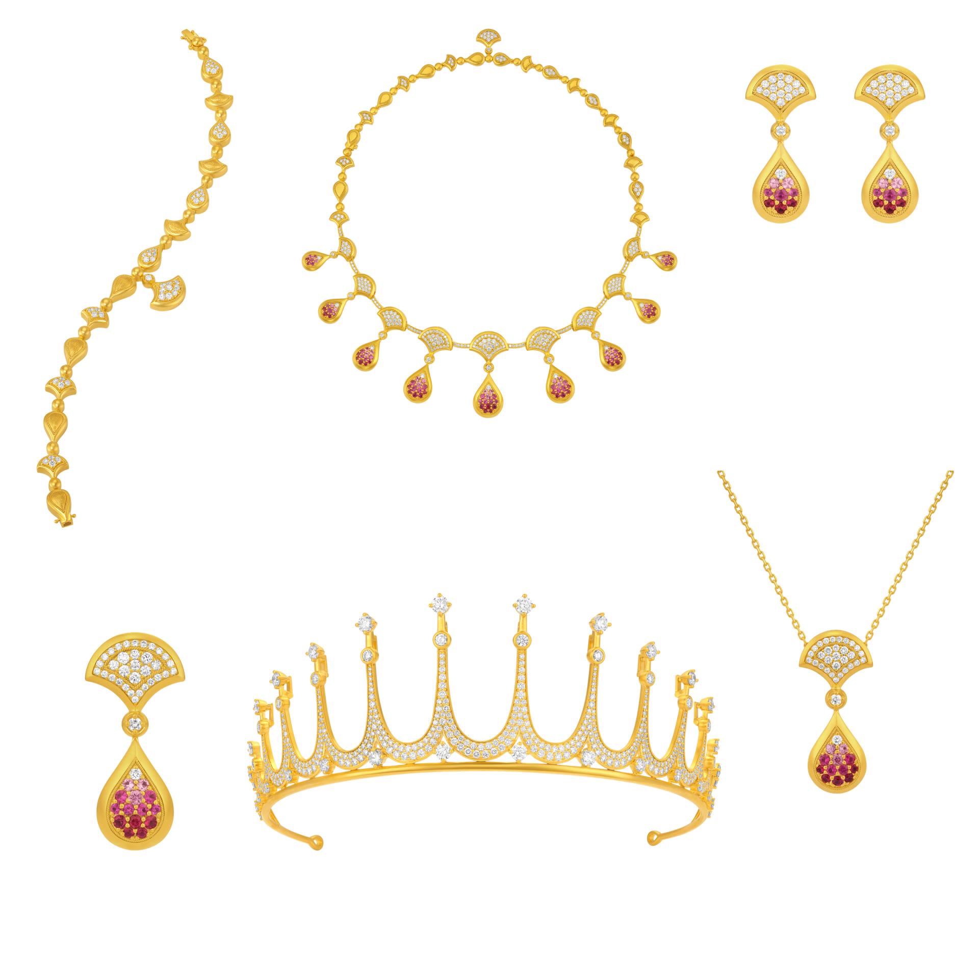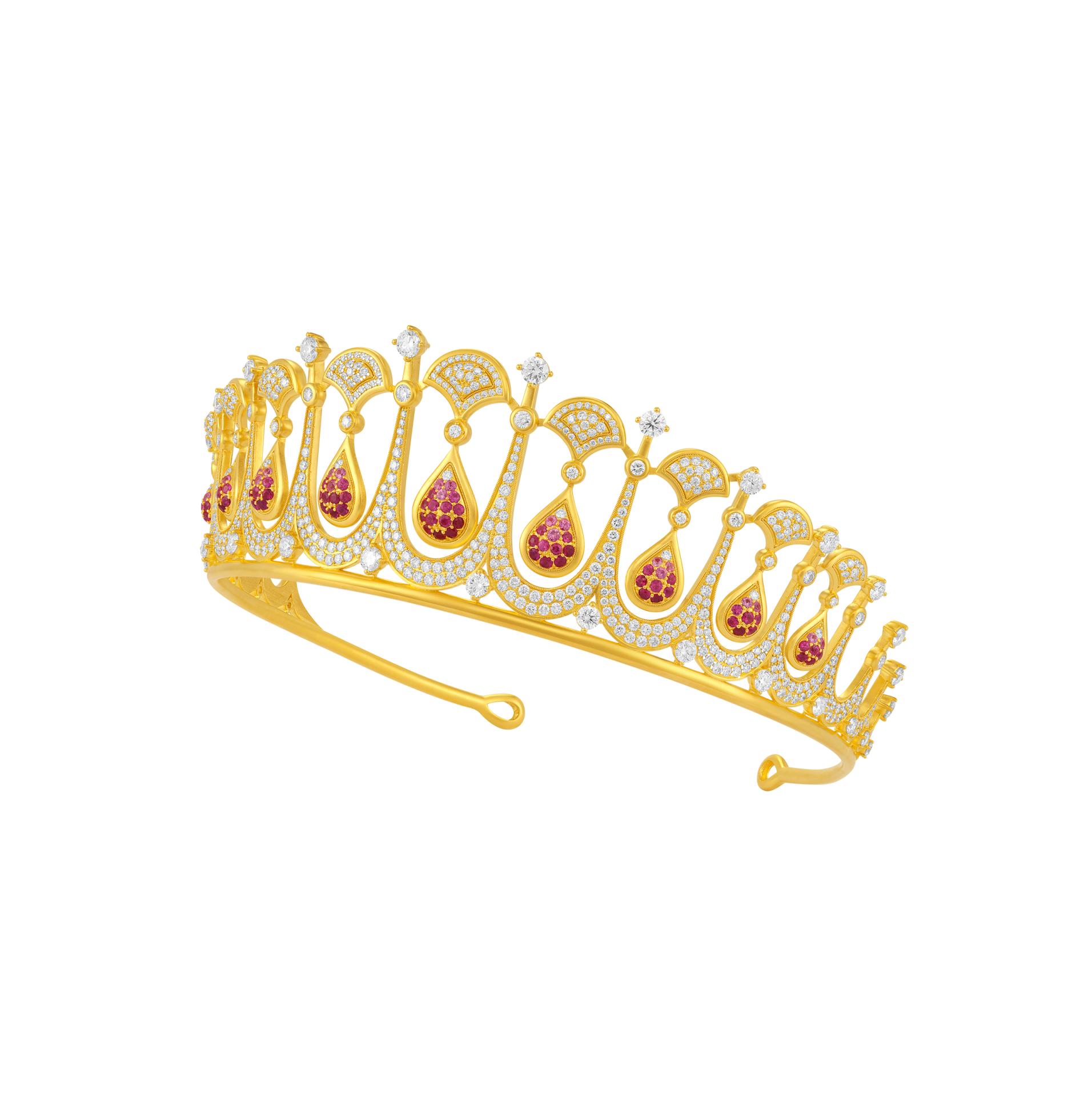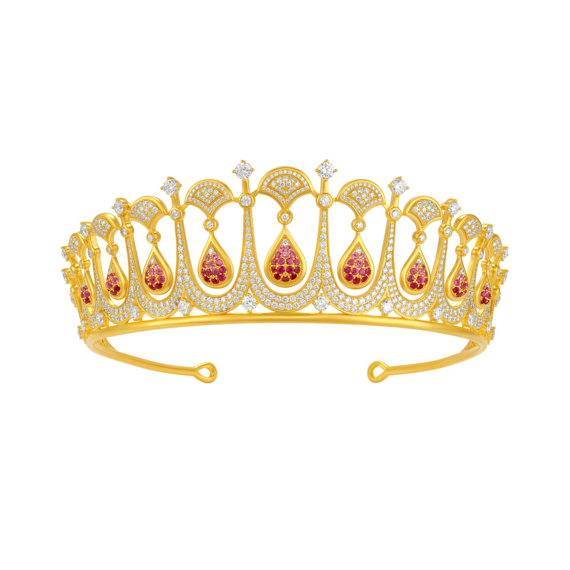 Breaking conventional boundaries of gold craftsmanship, the tiara introduces a proprietary convertible structure that allows it to be elegantly transformed into a bracelet, necklace, brooch, or earrings, thus covering various scenarios from a wedding ceremony to everyday occasions. This tiara employs a flexible clasp positioning technique, using "needle-threading" of high jewelry to secure gemstones. This makes the lower phoenix feathers sway gently, injecting dynamic vitality into static jewelry while ensuring precise and secure positioning during assembly and disassembly.