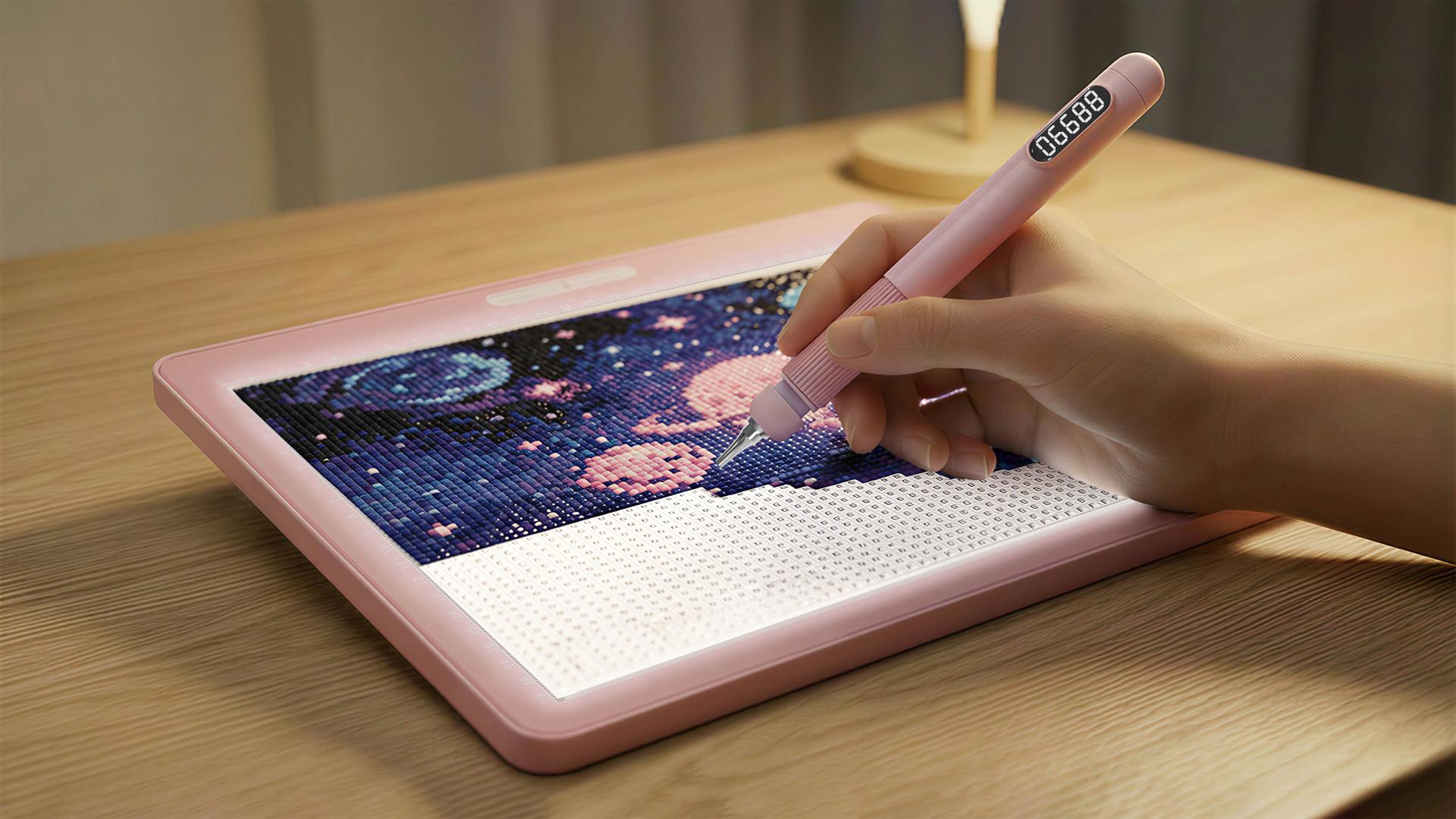 In the fast-paced rhythm of modern life, women often find themselves consumed by work and household responsibilities, yearning for a tranquil sanctuary to retreat, heal, and reconnect with themselves. Diamond painting, with its accessible process and high sense of accomplishment, has become a popular medium for stress relief and self-expression. However, the experience is frequently undermined by long-standing drawbacks of traditional tools: prolonged hunching over to pick up diamonds leads to neck and hand strain; repetitive actions lack feedback, making the process monotonous; inadequate lighting and external distractions further disrupt focus and peace of mind.