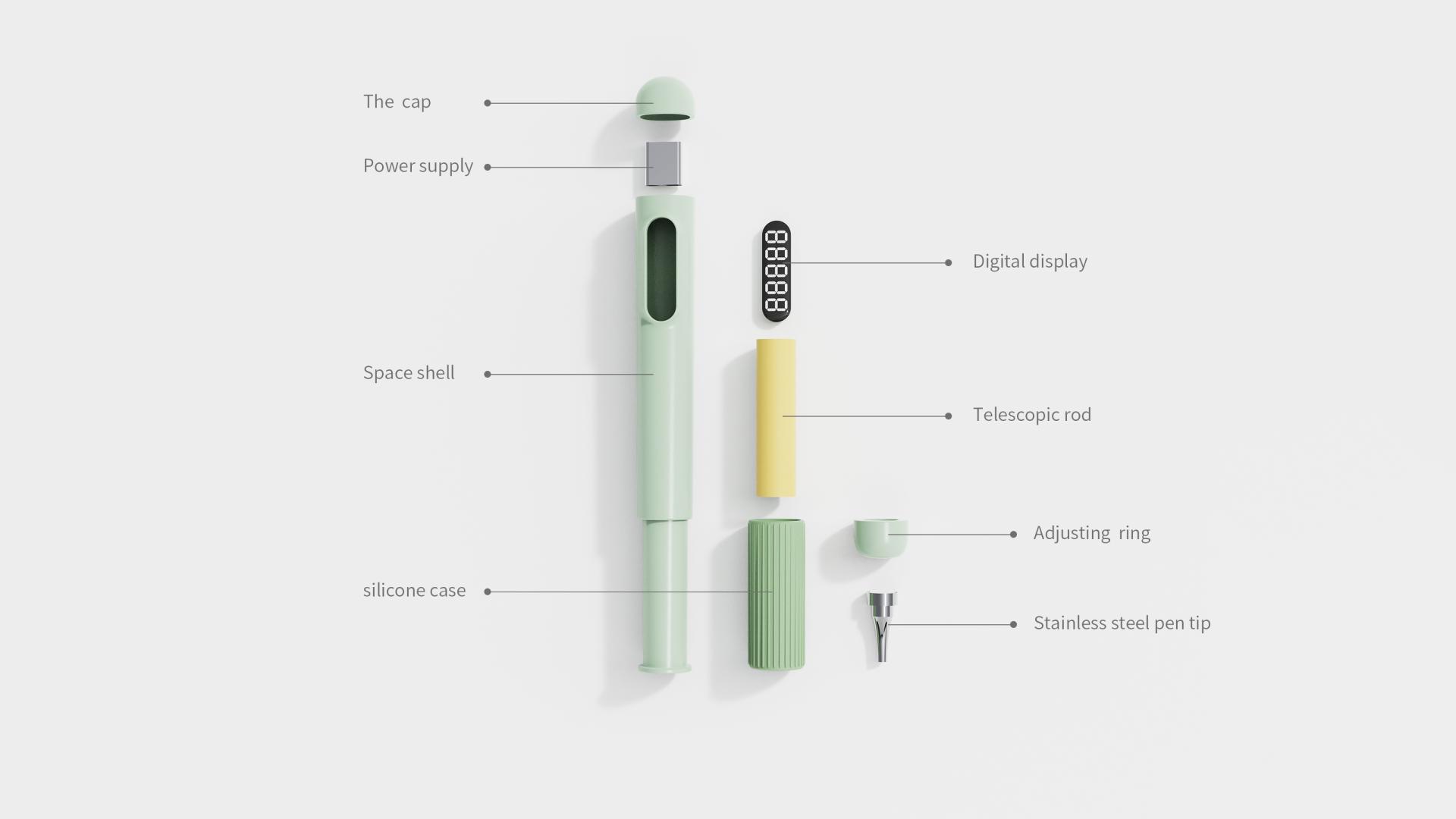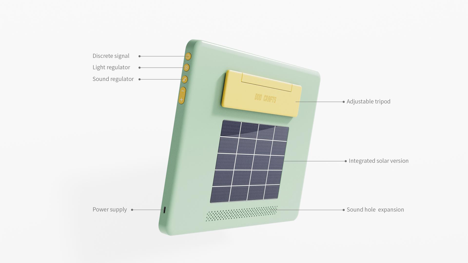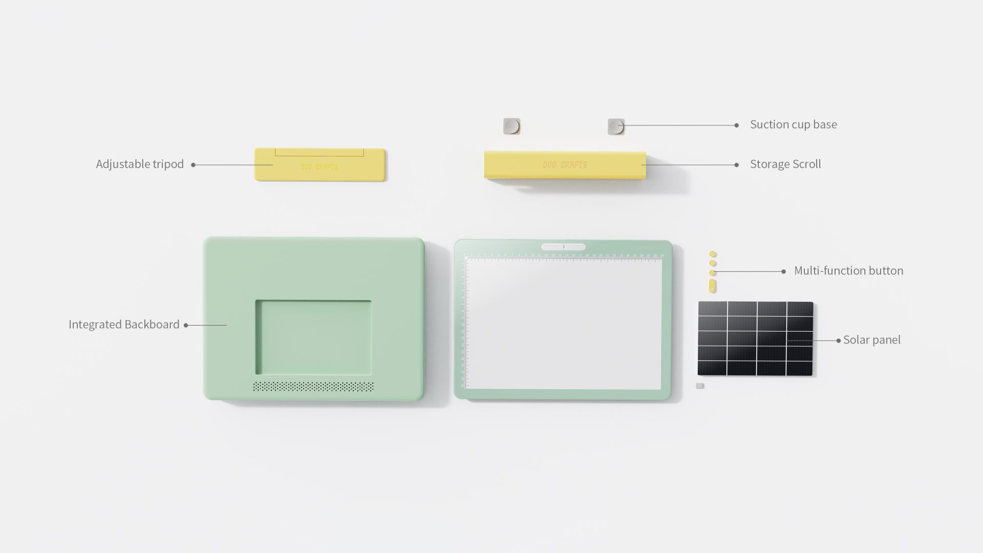The applicator board combines a backlit lightbox with posture guidance. Its soft, adjustable lighting adapts to various environments, while three calibrated lines on the surface utilize a moiré effect to prompt correct sitting posture (e.g., only the top line is visible when sitting upright). Paired with an adjustable stand, users can customize the height to maintain a natural viewing angle. The board also emits white noise to block out distractions, fostering deep concentration. A built-in solar panel on the back ensures continuous use outdoors or during power outages.
