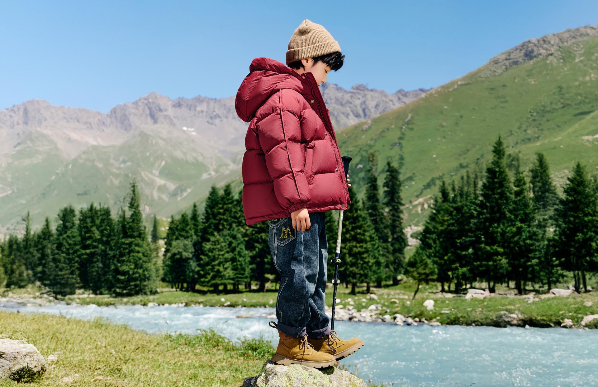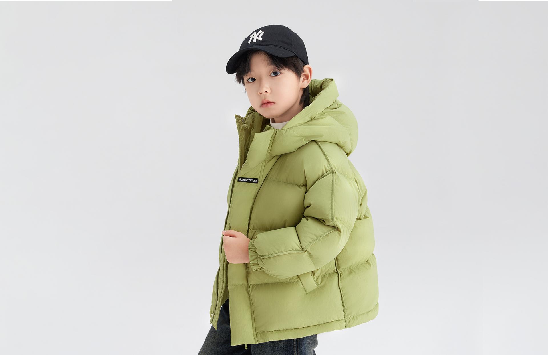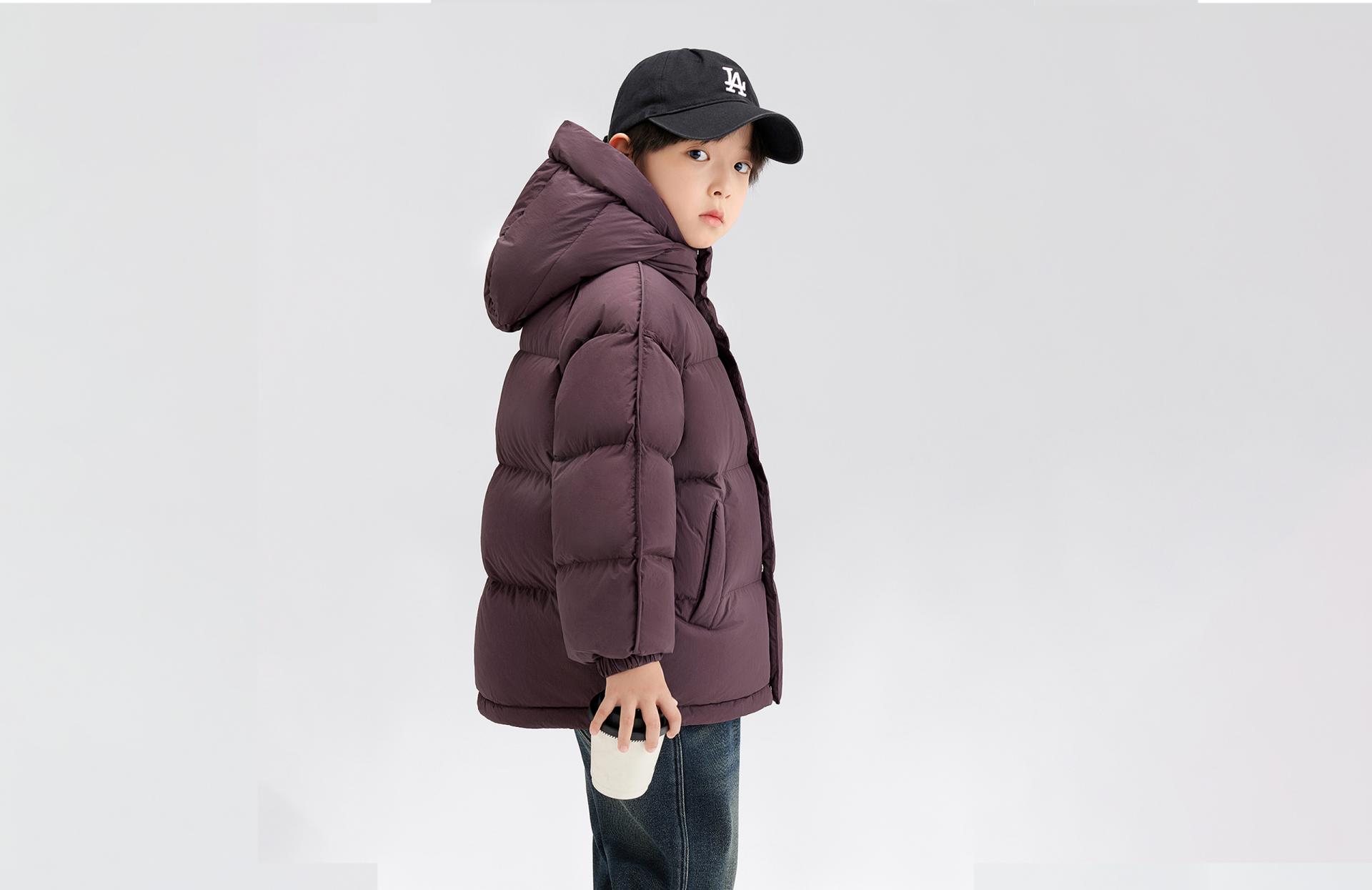 This product draws inspiration from the colors of the natural rainbow, breaking away from traditional winter's monotonous palette. With its vibrant and diverse design, it infuses the cold season with warmth and vitality. The outer layer is crafted from nylon silk fabric, combined with DuPont's three-proof technology, which makes the down jacket oil-resistant, stain-resistant, and easy to clean. Its innovation lies in the high-tech treatment of the fabric, enabling the jacket to effectively resist stains from daily use while maintaining its bright colors as if new. Through the use of meticulously designed ergonomic tailoring, the jacket ensures comfort and freedom of movement for children during activities. Particularly, the widened windproof hood design effectively blocks cold winds, keeping children warm during outdoor activities. The silver ion heat-retention layer on the back utilizes "Back-Warm Technology" to continuously provide warmth, ensuring optimal comfort for children in low-temperature environments. The down jacket is filled with 90% white duck down, featuring a down cluster content of over 85%. It adopts a large-cluster design that achieves a loftiness (fill power) of more than 680, providing a lasting warmth experience. With a cleanliness level exceeding 1000, it effectively minimizes odors, making it especially suitable for children with sensitive respiratory systems. The hypoallergenic design ensures safe and comfortable wear. Additionally, the inner lining of the side pockets is made from soft flannel, enhancing the warmth retention of the pockets and keeping children's hands warm at all times.