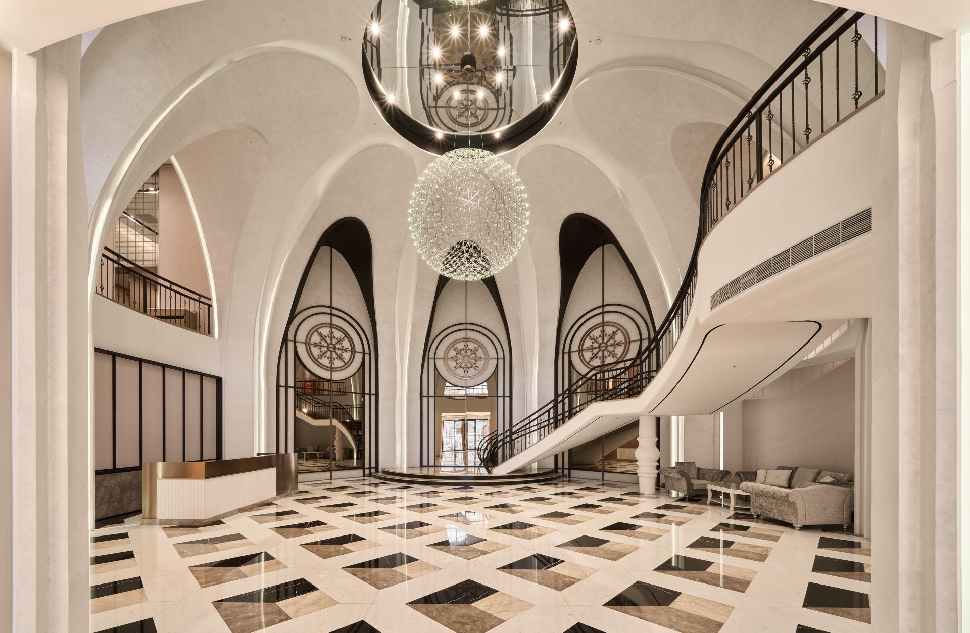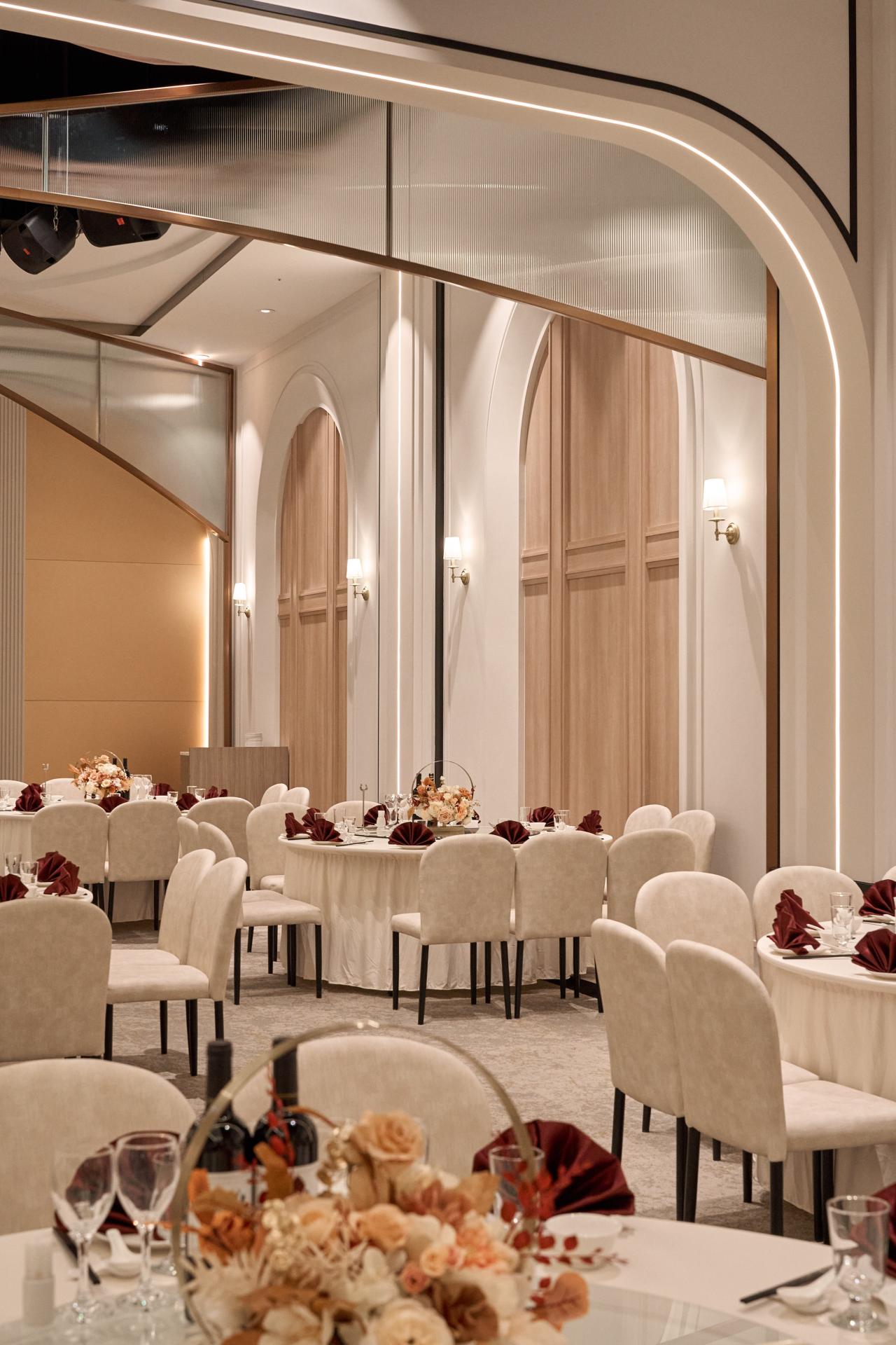 A wedding banquet hall, carrying blessings of newlyweds over the past 10 years. Redefining and harmonizing interior style, the design team solves the problem of inconsistency of each original space. Considering brand innovation and acceptance of future customers, design team integrate modern and luxurious senses and retranslate characters of French church. Each room not only suits wedding banquet purposes, but also multiplies its business and catering functions. Retaining parts of design elements to extend old memories highlights the spirit of sustainability and environment-friendly concept.
