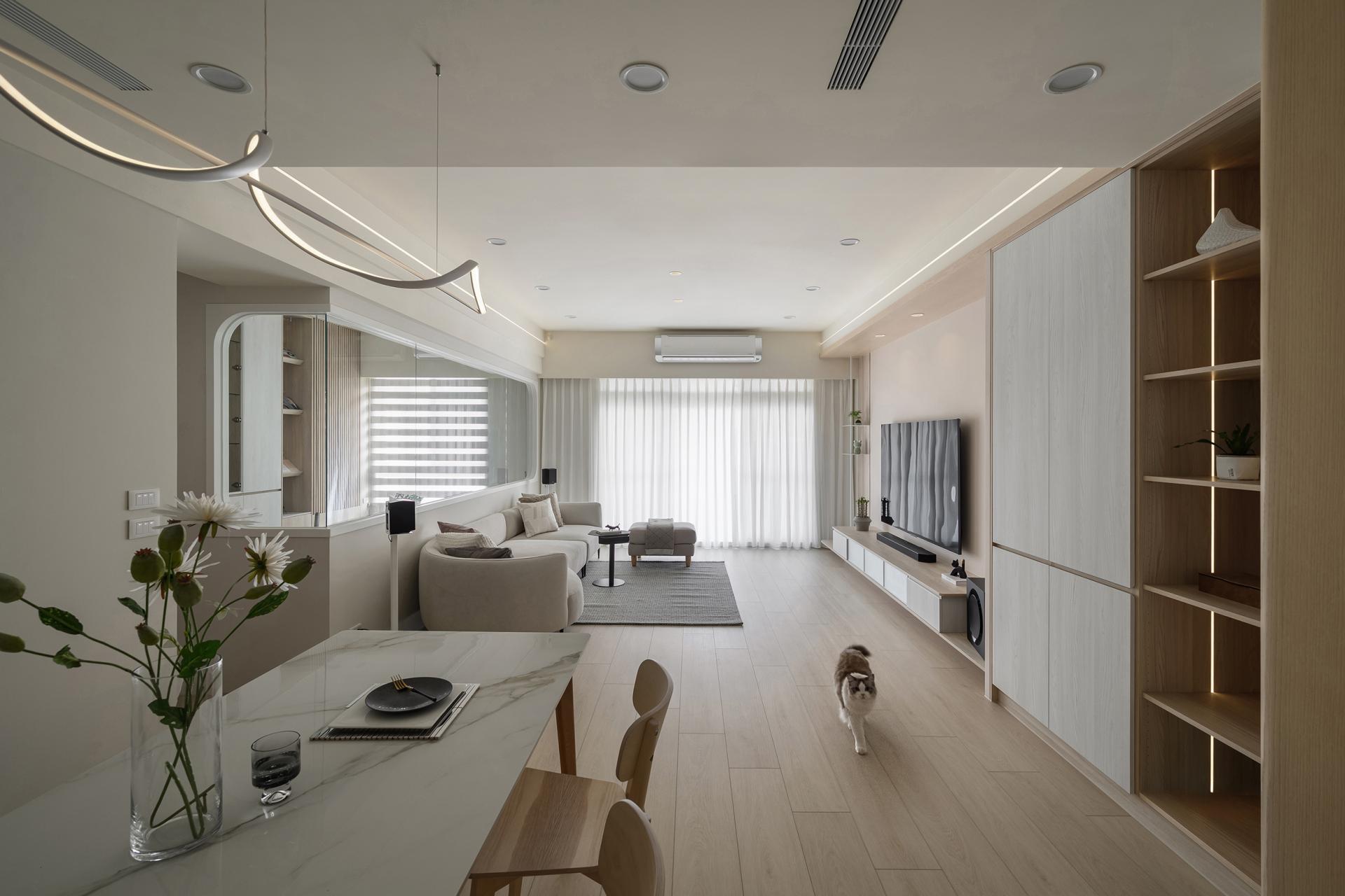 The project centers on a wood-inspired, pet-friendly design concept, emphasizing integrating pet activity needs and storage functionality within a warm color palette and comfortable circulation. The owner envisioned a sanctuary in the bustling city—a space to relax, work, and enjoy the companionship of a pet simultaneously. By employing lightweight materials and soft color combinations, the designer significantly enhanced the sense of openness and interactive livability. Whether reading, working, or playing with the cat, residents can appreciate the inviting atmosphere created by the natural warmth of wood throughout the space.