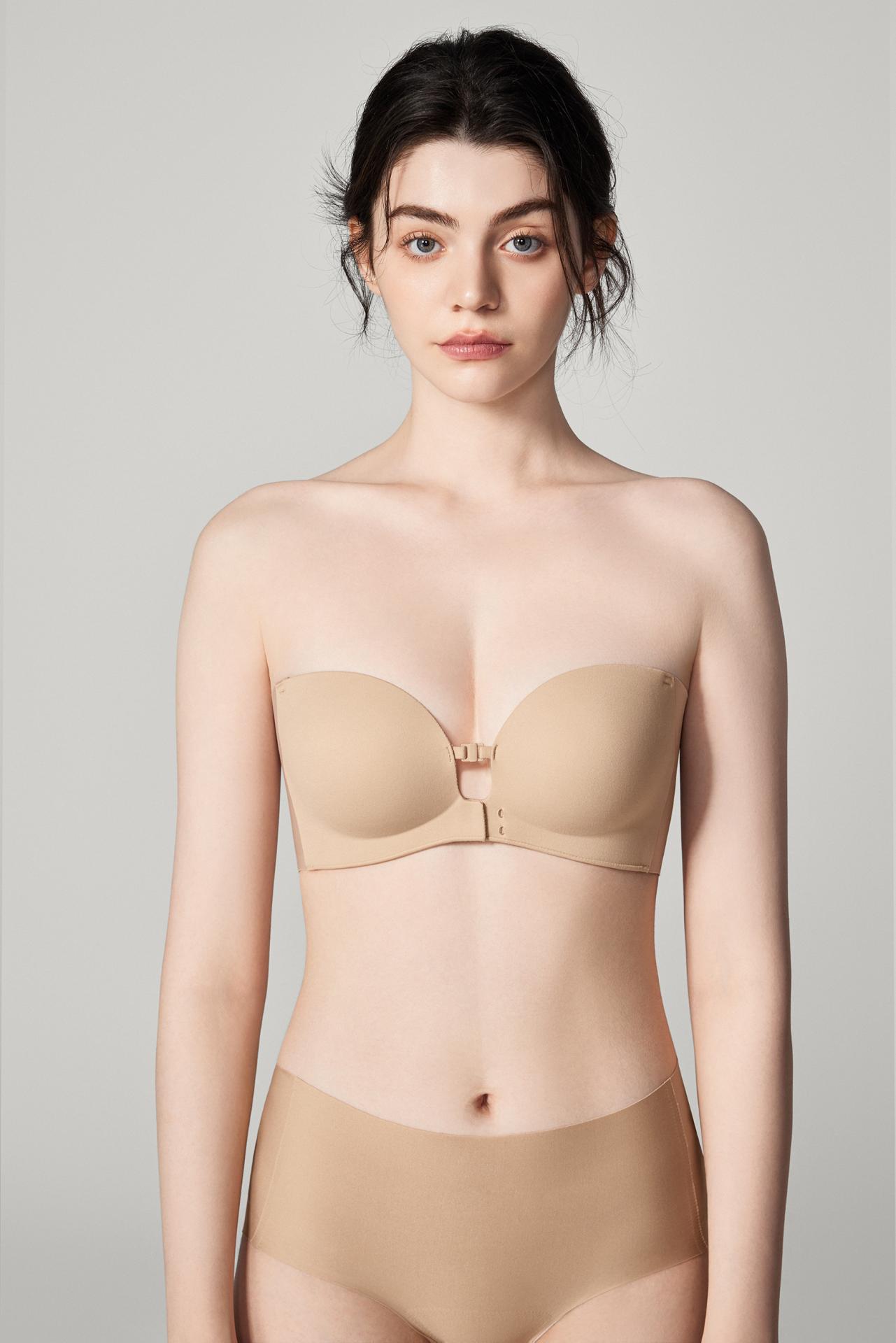 LUCKMEEY Adjustable Front-Hook Closure Strapless Bra innovatively integrates patented technology and ergonomic design, addressing several persistent challenges common in traditional strapless bras—easy slippage, limited sizing adaptability, inadequate lift, and poor invisibility. This revolutionary product redefines the perfect balance between functionality and aesthetic elegance.