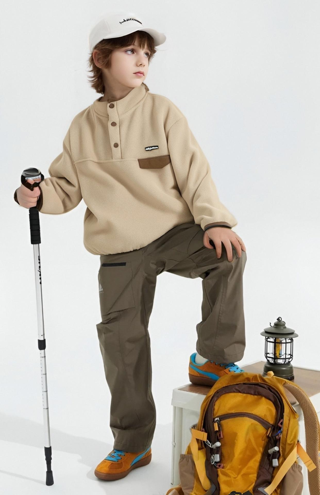 To enhance both durability and visual appeal, the fabric employs a dual-sided brushing and napping technique that creates finer and evener fibers, which improves resistance to pilling and deformation. Even after repeated machine washes, it remains soft and fluffy. By optimizing the fiber structure and weaving method, the fabric maintains outstanding warmth insulation without the bulkiness commonly associated with conventional high-density fleece. With its fit and neat look, it balances functionality and style, meeting the diverse dressing needs of children.