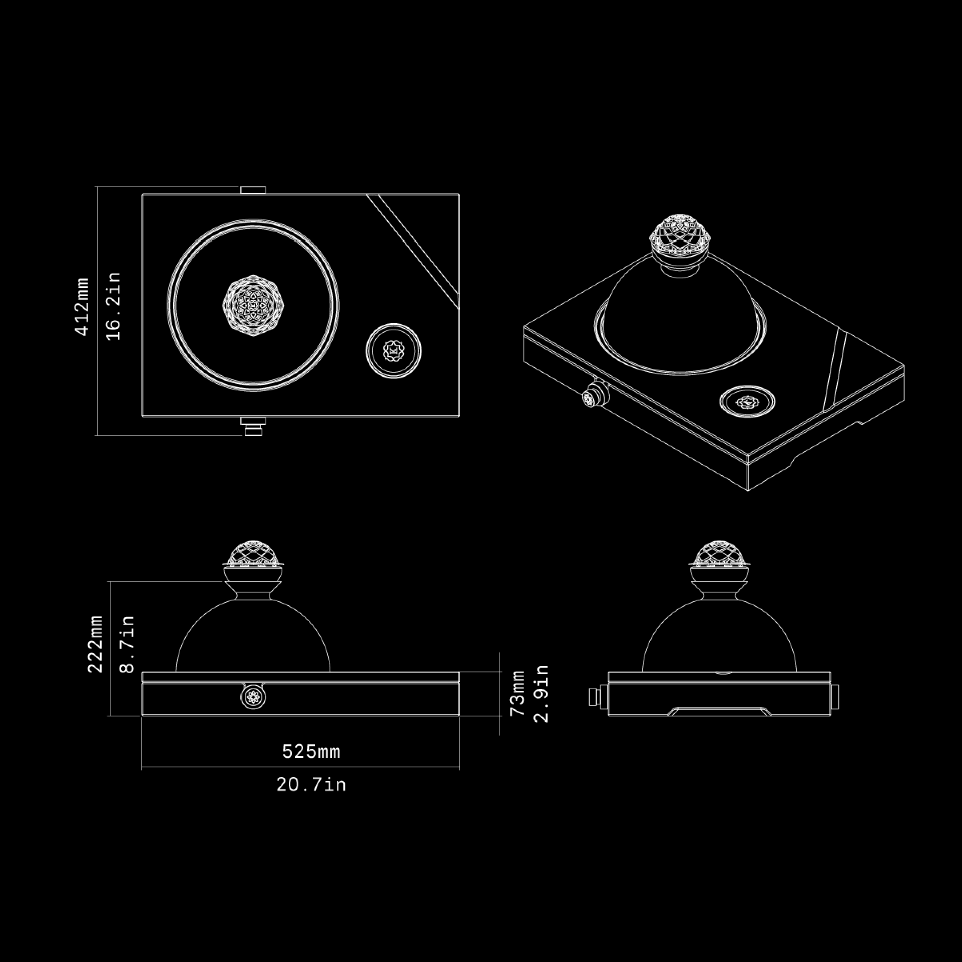The Kaloud® Krysalis® is not a Hookah...it's a Krysalis®. The world's first. It draws upon more than 500-years of tradition and innovation and emerges reborn as something new; something unknown. The Monarch Hayat contains a dual-chambered, hand-blown, crystal vessel intake. A horizontal purge. The world's first carbon-activated, charcoal filtration system. Bluetooth-enabled lighting and control system. Integrated storage. Woven silicone hose with interchangeable metal tips.